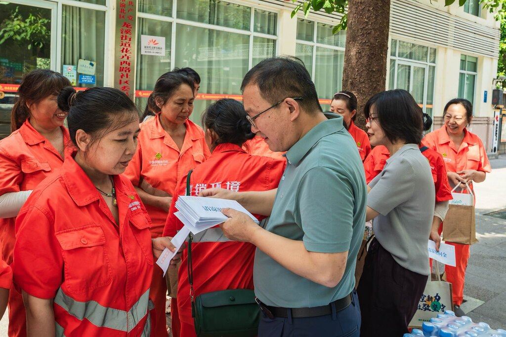 19670 次浏览 07-28第1眼TV-华龙网讯(通讯员 袁铭艺)为切实关怀高温天气下坚守岗位的一线劳动者,7月25日上午,渝北区新专联联合龙溪街道新时代文明实践中心、规建办、工会,在辖区内开展“临空新力・致敬坚守”夏日送清凉活